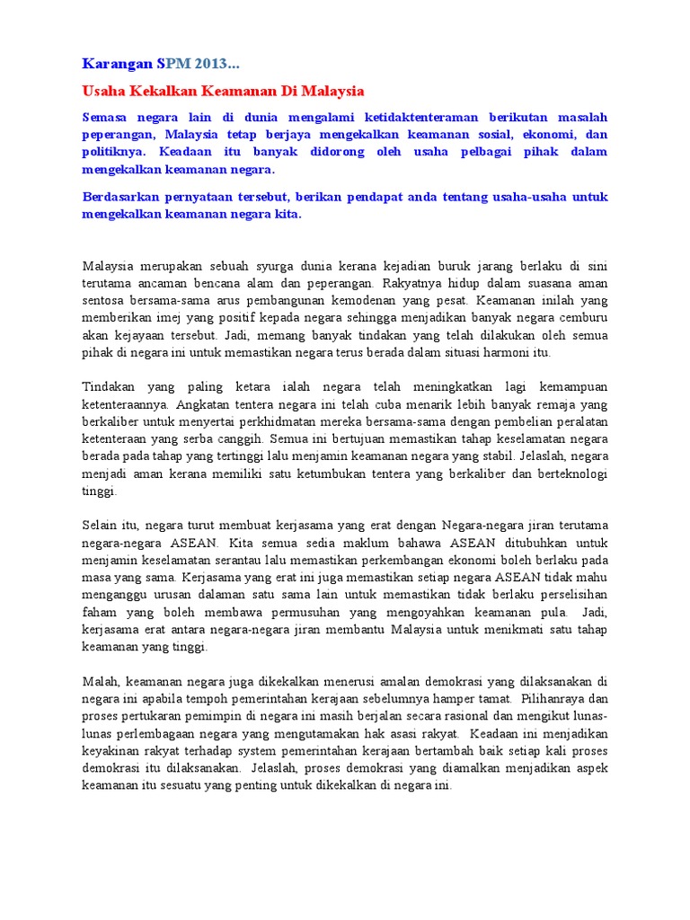 Usaha Kekalkan Keamanan Di Malaysia Pdf